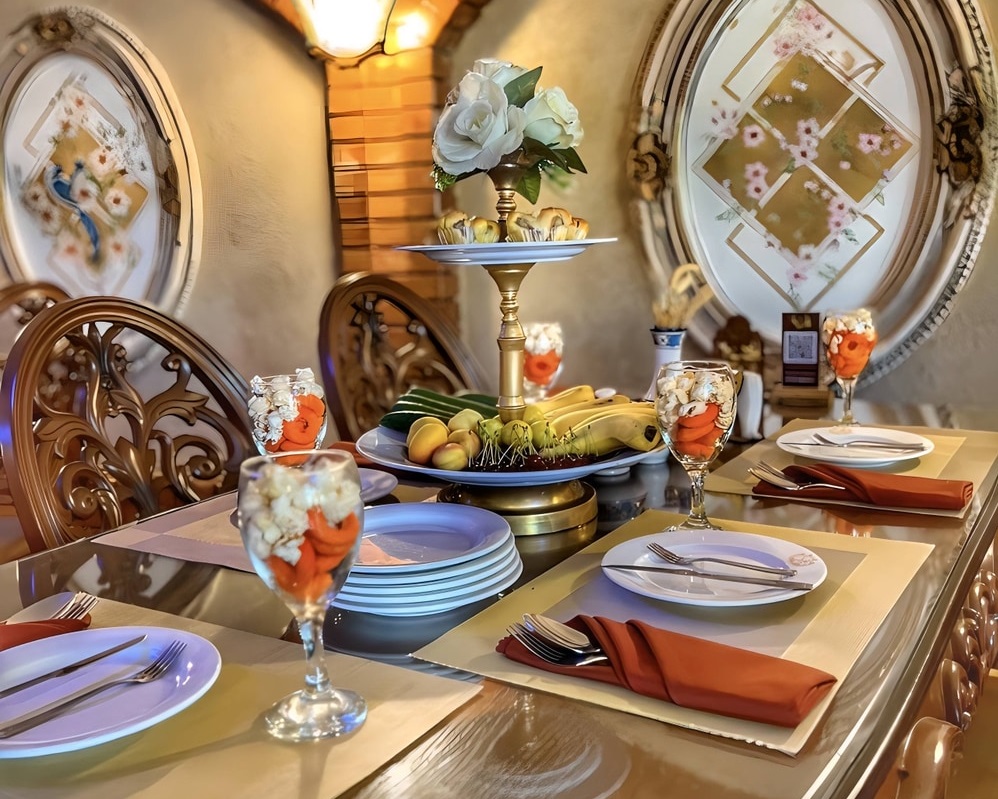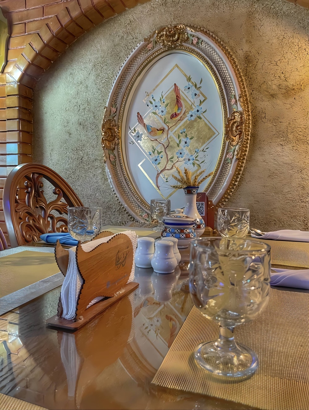 طراحی خوش نقش و نگار این رستوران،هزار و یک رنگ بودن هر گوشه و کنارش هنر ذوق و خلاقیت دستان هنرمندی است که تمام حسشان را برای یک لحظه آرامش شما در این مکان به نقش کشیده اند. برای سرو انواع غذاهای سنتی ، ایرانی، فرنگی،انواع نوشیدنی های سرد و گرم پذیرای شما عزیزان هستیم